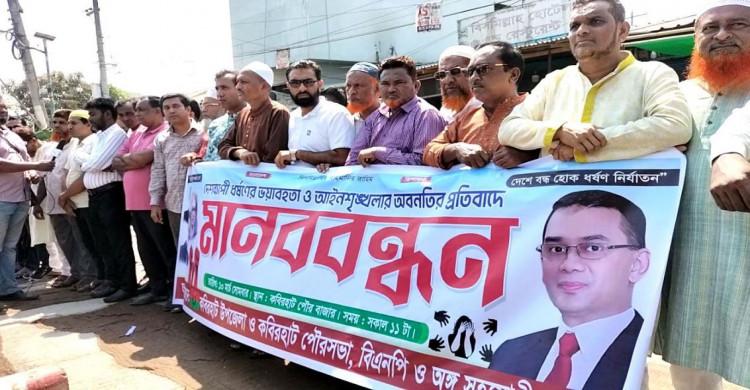 সোমবার (১০ মার্চ) বেলা ১১ ঘটিকায় কবিরহাট বাজারের জিরো পয়েন্টে কবিরহাট উপজেলা ও পৌর বিএনপি এবং অঙ্গ ও সহযোগী সংগঠনের আয়োজনে ঘন্টাব্যাপী এ মানববন্ধন অনুষ্ঠিত হয়।