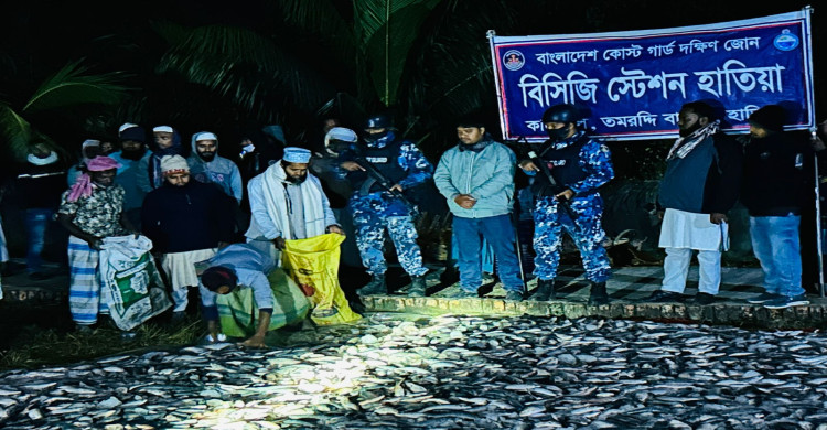 হাতিয়ায় ২৮ লক্ষ টাকা মূল্যের ৫ হাজার ৬ শ' কেজি জাটকা জব্দ করেছে কোস্টগার্ড