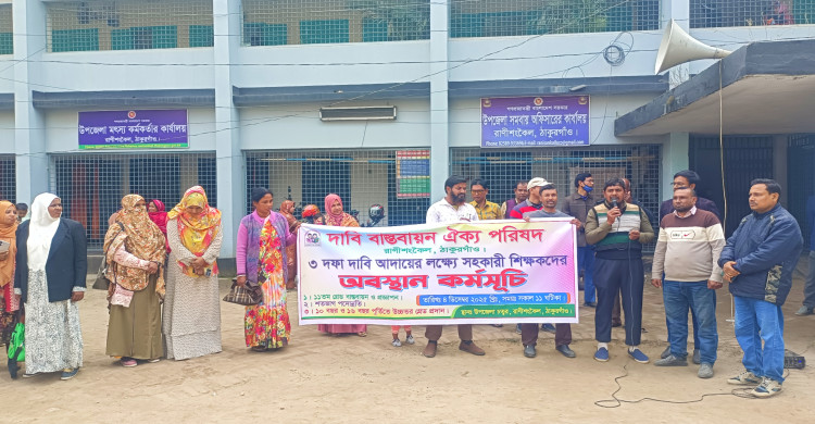সরকারি নির্দেশনা অমান্য করে রাণীশংকৈলে শিক্ষকদের আন্দোলন কর্মসূচি