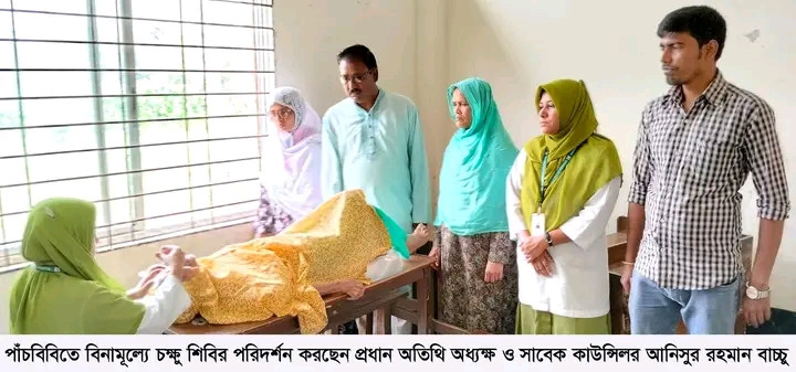 পাঁচবিবিতে বিনামূল্যে চক্ষু চিকিৎসা এবং ছানি রোগী বাছাই ক্যাম্পের উদ্বোধন অনুষ্ঠান আজ সোমবার সকাল ৯ টায় শহীদ আলাউদ্দিন মিউনিসিপাল স্কুল চত্বরে অনুষ্ঠিত হয়।