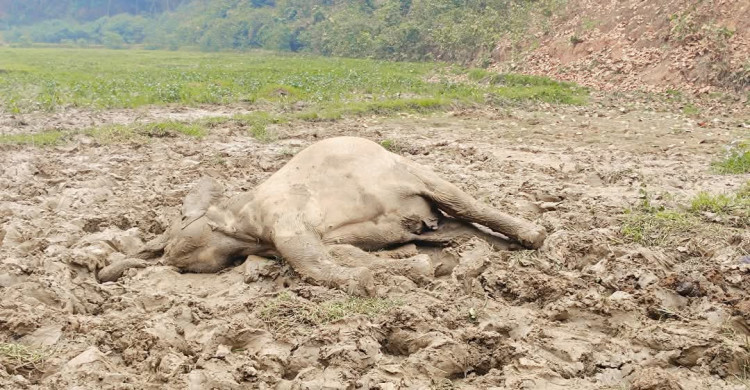 নালিতাবাড়ীতে ফসল রক্ষার বৈদ্যুতিক তারে জড়িয়ে বন্য হাতির মৃত্যু