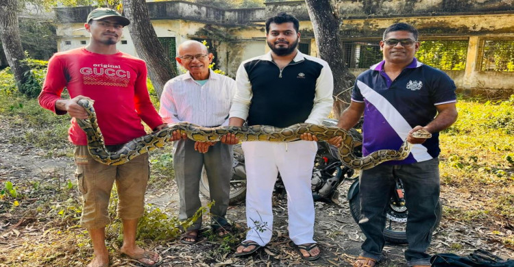 শ্রীমঙ্গলে ঝোপ কাটতে গিয়ে ধরা পড়ল ১২ ফুটের অজগর