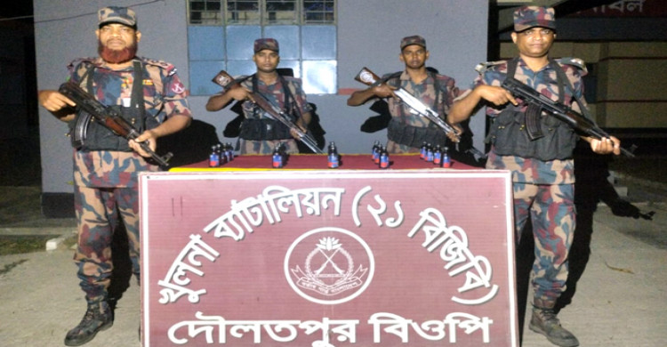 যশোরের বেনাপোল দৌলতপুর সীমান্ত থেকে ২১ বিজিবি অধীনস্থ দৌলতপুর বিওপির সদস্যরা ২০ বোতল ভারতীয় ফেনসিডিল আটক করেছে। সোমবার (১৪ এপ্রিল) রাতে সীমান্ত এলাকায় চোরাচালান বিরোধী অভিযান পরিচালনা করে ফেনসিডিল এর চালানটি আটক করেন। খুলনা ব্যাটালিয়ন ২১ বিজিবি এর অধিনায়ক লেঃ কর্নেল মোহাম্মদ খুরশীদ আনোয়ার জানান, বিজিবি’র আভিযানিক কর্মকান্ডের অংশ হিসেবে দীর্ঘদিন যাবত চোরাচালানী মালামাল এবং মাদকসহ পাচার চক্র আটকের ক্ষেত্রে সীমান্তে বিজিবির গোয়েন্দা নজরদারী ও টহল তৎপরতা জোরদার করা হয়েছে। এরই ধারাবাহিকতায় দৌলতপুর বিওপির সীমান্ত এলাকায় চোরাচালান বিরোধী অভিযান পরিচালনা করে মালিকবিহীন অবস্থায় ২০ বোতল ভারতীয় ফেন্সিডিল আটক করা হয়েছে।