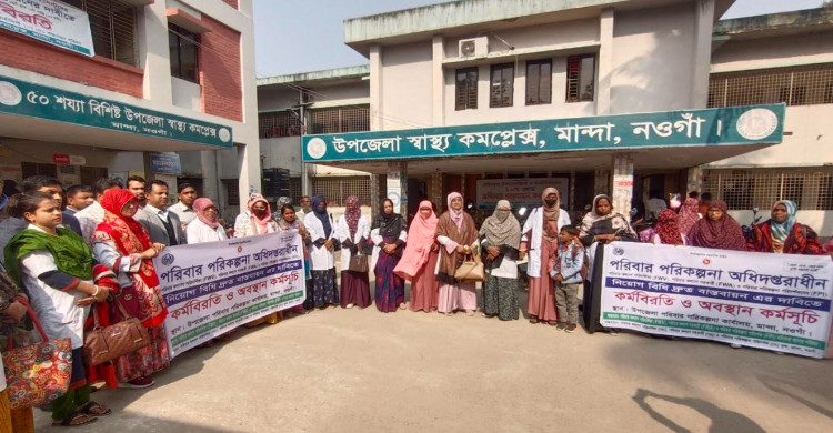 মান্দায় পরিবার পরিকল্পনা কর্মীদের কর্মবিরতি ও অবস্থান কর্মসূচি পালন