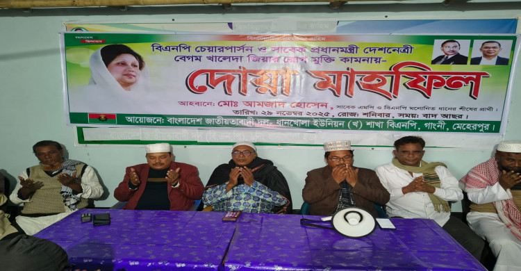 বিএনপি চেয়ারপার্সন বেগম খালেদা জিয়ার রোগমুক্তি কামনায় গাংনীতে দোয়া মাহফিল
