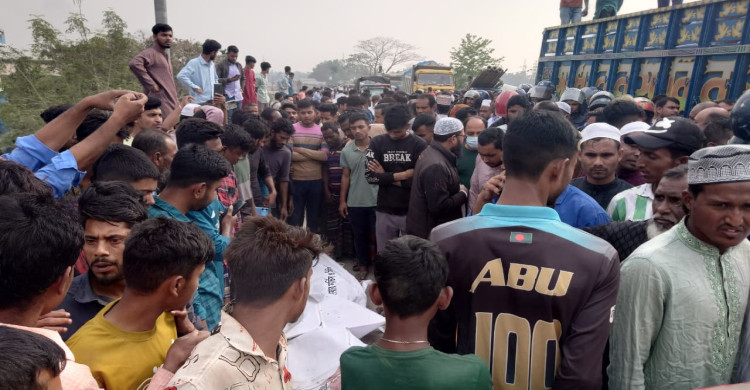 শেরপুর-জামালপুর সড়কের ব্রহ্মপুত্র সেতু এলাকায় ট্রাকচাপায় পিতাপুত্র নিহত: সড়ক অবরোধ