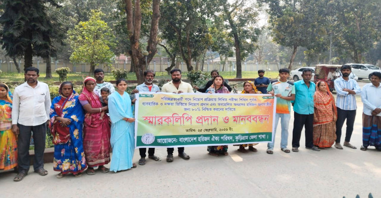 কুড়িগ্রামে পরিচ্ছন্নতাকর্মী নিয়োগে ৮০ভাগ সংরক্ষণের দাবিতে হরিজন সম্প্রদায়ের মানববন্ধন