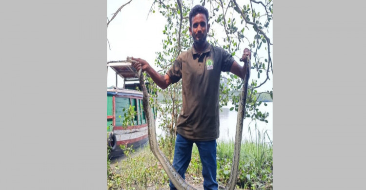 শরণখোলার লোকালয়ে উদ্ধার অজগর সুন্দরবনে অবমুক্ত