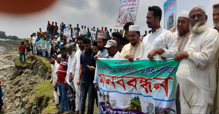নোয়াখালীতে বামনী নদীর ভাঙন রোধে ক্লোজার নির্মাণ ও ব্লক স্থাপনের দাবিতে মানববন্ধন