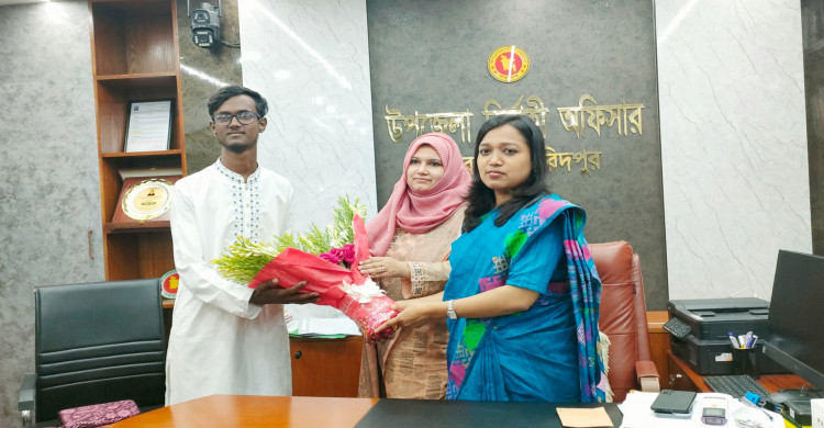 সদরপুরে প্যারাগ্লাইডার বানানো মারুফকে সংবর্ধনা দিলেন ইউএনও জাকিয়া সুলতানা