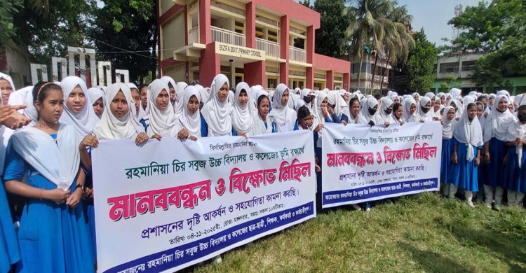 লাকসামে স্কুলের জায়গা দখলের চেষ্টার প্রতিবাদে শিক্ষার্থীদের মানববন্ধন ও বিক্ষোভ