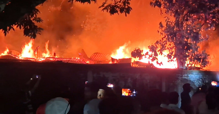 নেত্রকোনার দুর্গাপুরে আগুনে পুড়ে ছাই দুই পরিবারের বসতঘর-আহত-১