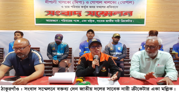 ব্যক্তিগত কালিমন্দির-বসতভিটা জবর দখলের অভিযোগ সাবেক জাতীয় টিমের নারী ক্রিকেটার একার সংবাদ সম্মেলন