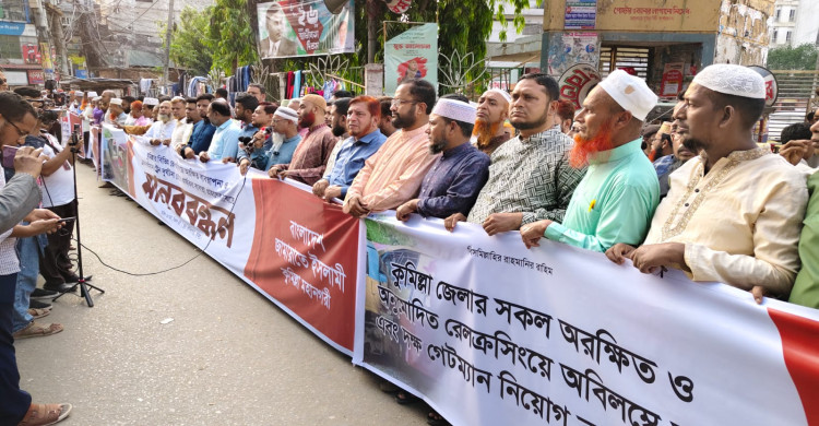 কুমিল্লায় রেলক্রসিংয়ে নিরাপত্তা জোরদারের দাবিতে জামায়াতের মানববন্ধন ও স্মারকলিপি প্রদান