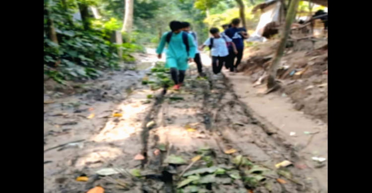 ৫০০ মিটার কাঁচা রাস্তার কারণে উল্লাপাড়ায় ১০ গ্রামের মানুষের চরম দুর্ভোগ