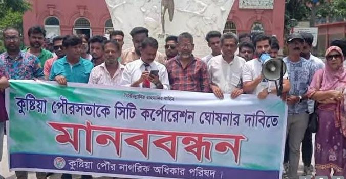 কুষ্টিয়া পৌরসভাকে সিটি কর্পোরেশন ঘোষণার দাবিতে মানববন্ধন