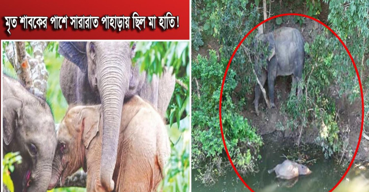 মৃত শাবকের পাশে সারারাত পাহাড়ায় ছিল মা হাতি