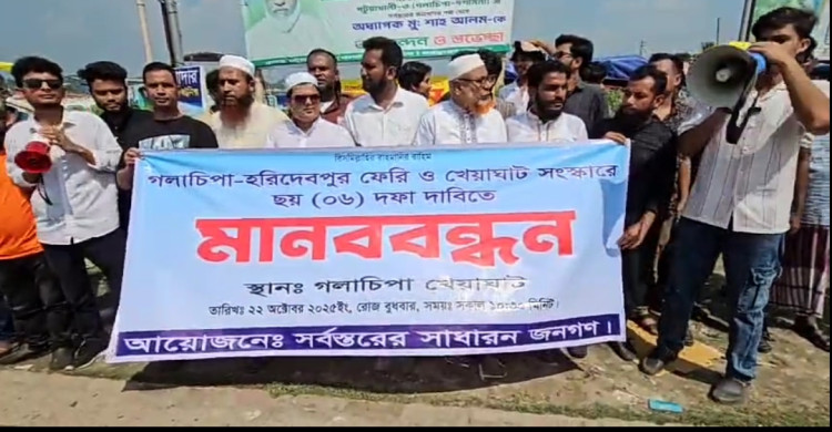 গলাচিপায় ফেরি ও খেয়াঘাট সংস্কারে ছয় দফা দাবিতে মানববন্ধন