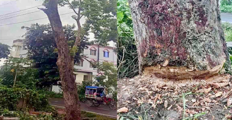 শুক্রবার সকালে ফরিদপুরের সদরপুর উপজেলার পিয়াজখালী আঞ্চলিক সড়কের পাশে থাকা একটি শিশুকঠের গাছ কাটার অভিযোগ করে এলাকাবাসী।