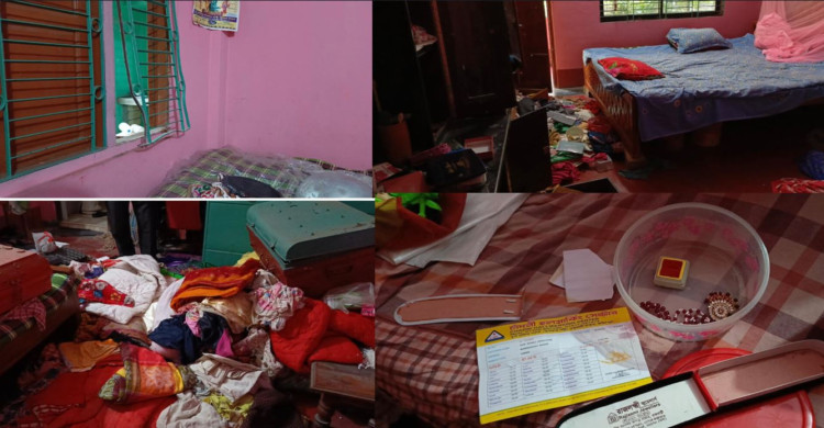 চুরির বিষয়টি নিশ্চিত হওয়ার পর তিনি আশপাশের প্রতিবেশী ও স্থানীয়দের ডেকে আনেন। পরে সবাই মিলে দেখতে পান যে বাড়ির পেছনের দিক থেকে গ্রিল কেটে চোরেরা তিনটি কক্ষের আসবাবপত্র এলোমেলো করে ঘরে থাকা স্বর্ণালংকার, টেলিভিশন, ফ্রিজ, গ্যাস সিলিন্ডার, গ্যাস চুলা, পানির মোটর, কাঁসা-পিতলের থালা-বাসন, তিনটি কলসি ও প্রায় ১৫টি শাড়ি চুরি করে নিয়ে গেছে। প্রাথমিকভাবে ধারণা করা হচ্ছে, প্রায় ১৫ লাখ ৮২ হাজার টাকা মূল্যের মালামাল চুরি হয়েছে।