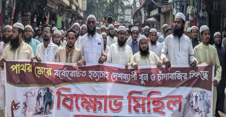 পাথর মেরে মানুষ হত্যা ও দেশব্যাপী খুন-চাঁদাবাজির প্রতিবাদে লাকসামে বিক্ষোভ মিছিল