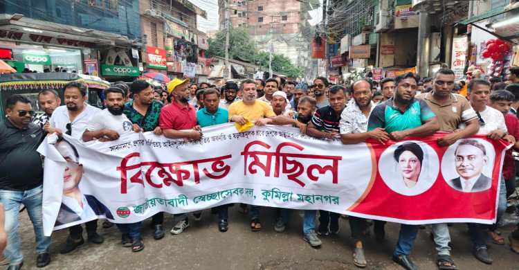 নতুন বাংলাদেশকে নিয়ে ষড়যন্ত্র আর নয়: কুমিল্লায় স্বেচ্ছাসেবক দলের বিক্ষোভ