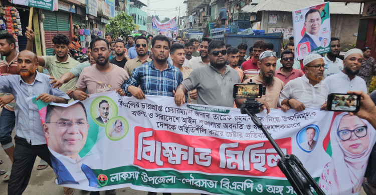 লাকসামে তারেক রহমানকে কটুক্তির প্রতিবাদে বিএনপির বিক্ষোভ মিছিল