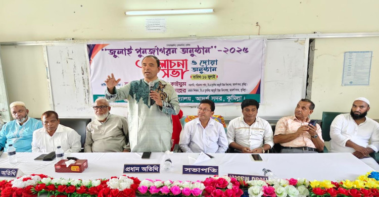 কুমিল্লায় “জুলাই পুনর্জাগরণ অনুষ্ঠান”-২০২৫ আলোচনা সভা ও দোয়া অনুষ্ঠান অনুষ্ঠিত হয়েছে। আজ বুধবার (১৬ জুলাই) দুপুর ১২টায় আদর্শ সদর উপজেলা বি.এ. বহুমুখী উচ্চ বিদ্যালয়ের অডিটোরিয়ামে এ দোয়া অনুষ্ঠান অনুষ্ঠিত হয়। এ সময় জুলাই শহীদদের প্রতি শ্রদ্ধা জানিয়ে শিক্ষার্থীদের উদ্দেশ্য দিকনির্দেশনামূলক আলোচনা করা হয়।
