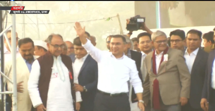 গণসংবর্ধনা মঞ্চে তারেক রহমান