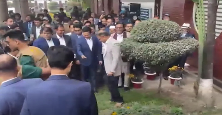 সংবর্ধনা মঞ্চের পথে তারেক রহমান