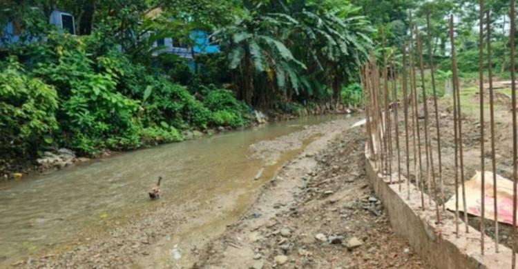 মাধবকুন্ড ছড়ায় অপরিকল্পিত গাইডওয়াল নির্মাণ; ভাঙ্গনের হুমকিতে ১০ আদিবাসি পরিবার