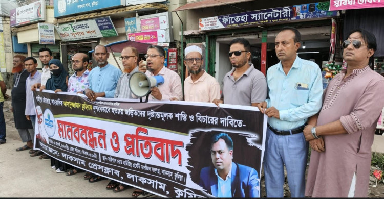 সাংবাদিক তুহিন হত্যার প্রতিবাদে লাকসাম প্রেসক্লাবের মানববন্ধন