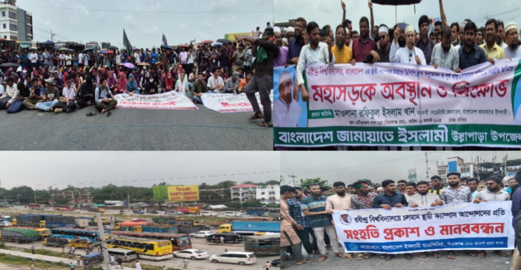 মহাসড়ক অবরোধ করে উত্তরবঙ্গ ব্লকেড কর্মসূচি রবীন্দ্র বিশ্ববিদ্যালয়ের শিক্ষার্থীদের