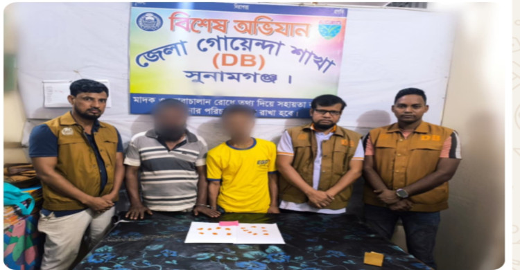 সুনামগঞ্জে ডিবি পুলিশের অভিযানে ইয়াবা ট্যাবলেটসহ দুই মাদক ব্যাবসায়ী আটক