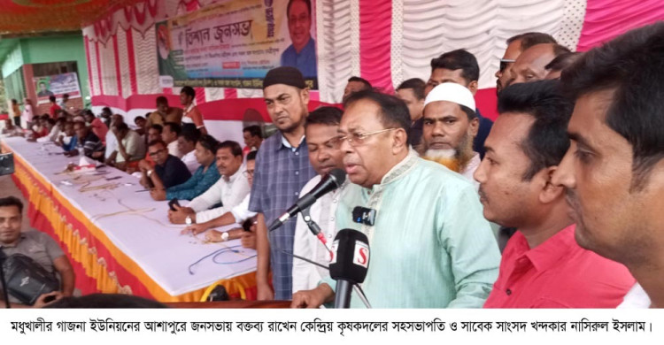 শনিবার (১৬ আগস্ট) বিকেল ৫টায় উপজেলার আশাপুর সরকারি প্রাথমিক বিদ্যালয় মাঠে অনুষ্ঠিত এই জনসভায় প্রধান অতিথি হিসেবে বক্তব্য রাখেন বাংলাদেশ জাতীয়তাবাদী কৃষকদল কেন্দ্রীয় কমিটির সহ-সভাপতি ও ফরিদপুর-১ আসনের সাবেক সংসদ সদস্য আলহাজ্ব খন্দকার নাসিরুল ইসলাম। মধুখালী উপজেলা কৃষকদলের সদস্য সচিব তানভীর আহমেদ শিমুলের সঞ্চালনায় এবং গাজনা ইউনিয়ন বিএনপির সাবেক সভাপতি আব্দুর রাজ্জাক মোল্লার সভাপতিত্বে এই সভা অনুষ্ঠিত হয়।