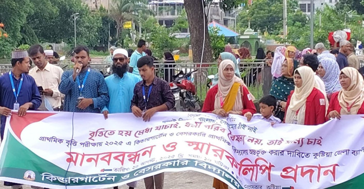 কুষ্টিয়ায় প্রাথমিক বৃত্তি পরীক্ষায় বৈষম্যহীন অন্তর্ভুক্তির দাবিতে মানববন্ধন ও স্মারকলিপি প্রদান