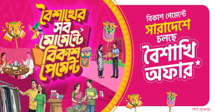 বৈশাখের কেনাকাটায় এবার বিকাশ পেমেন্টে ১,৩৫০ টাকা পর্যন্ত ডিসকাউন্ট ও ক্যাশব্যাক