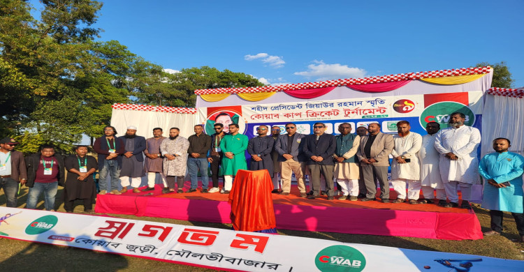জুড়ীতে শহীদ প্রেসিডেন্ট জিয়াউর রহমান স্মৃতি কোয়াব ক্রিকেট টুর্নামেন্টের উদ্বোধন