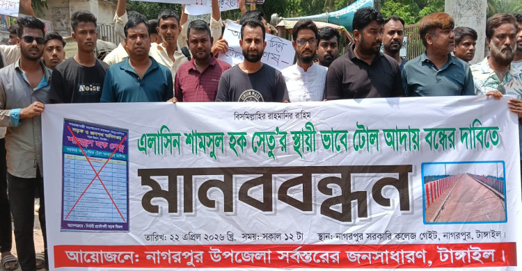 এলাসিন শামসুল হক সেতুর স্থায়ীভাবে টোল বন্ধের দাবিতে নাগরপুরে মানববন্ধন