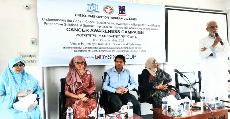 ১৫ সেপ্টেম্বর সোমবার সকাল ৯ টার সময় ডাইসিন গ্রুপের চেয়ারম্যান আলহাজ্ব মোঃ মিজানুর রহমানের সভাপতিত্বে ক্যান্সার সচেতনতা মূলক সেমিনার অনুষ্ঠিত হয়। ইউনেস্কোর অংশগ্রহণ কর্মসূচীতে বাংলাদেশে ক্যান্সার শিক্ষা ও সচেতনতার ক্ষেত্রে ঘাটতিগুলি বোঝা এবং সম্ভাব্য সমাধান খুঁজে বের করা, মহিলাদের মধ্যে চ্যালেঞ্জগুলির উপর বিশেষ জোর দেয়া হয়। এসময় ইউনেস্কো অংশগ্রহণ কর্মসূচি ২০২৪-২৫ পরিচালক ও ঢাকা বিশ্ববিদ্যালয় জেনেটিক ইঞ্জিনিয়ারিং এবং বায়োটেকনোলজি বিভাগের অধ্যাপক ডাঃ সাবিনা ইয়াসমিন, প্রতিষ্ঠাতা ও সভাপতি, ক্যান্সার কেয়ার অ্যান্ড রিসার্চ ট্রাস্ট বাংলাদেশ এর সহ-পরিচালক ও ঢাকা বিশ্ববিদ্যালয় জেনেটিক ইঞ্জিনিয়ারিং এবং বায়োটেকনোলজি বিভাগ সহযোগী অধ্যাপক ডাঃ মুস্তাক ইবনে আইয়ুব, একই কর্মসূচির সহকারী পরিচালক ও ঢাকা বিশ্ববিদ্যালয়ের জেনেটিক ইঞ্জিনিয়ারিং এবং বায়োটেকনোলজি বিভাগের প্রভাষক কানিজ ফাতেমা বিস্তারিত ক্যান্সার বিষয়ে উপস্থিতদের মাঝে বিভিন্ন দিক তুলে ধরেন। এছাড়াও বক্তব্য রাখেন, ভোলাহাট উপজেলা স্বাস্থ্য কমপ্লেক্সের গাইনী বিশেষজ্ঞ ডাঃ মোসা: মোসফিকা কাওসারী লিসা ও সাইফুননেসা দাতব্য চিকিৎসালয়ের চিকিৎসক ডাঃ মোঃ আব্দুর রবসহ অন্যরা বক্তব্য রাখেন।