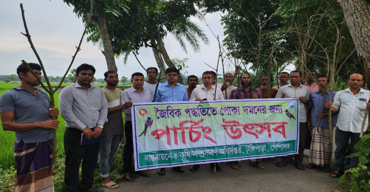 গোপালগঞ্জের টুঙ্গিপাড়ায় জৈবিক পদ্ধতিতে পোকা নিয়ন্ত্রণের অংশ হিসেবে কৃষক সমাবেশ ও পার্চিং উৎসব অনুষ্ঠিত হয়েছে। বুধবার (১৭ সেপ্টেম্বর) বিকেল ৪টায় উপজেলার বিভিন্ন কৃষি মাঠে কৃষকেরা স্বতঃস্ফূর্তভাবে অংশগ্রহণ করেন।