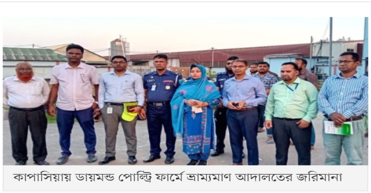 কাপাসিয়ায় ডায়মন্ড পোল্ট্রি ফার্মকে ৪ লক্ষ টাকা জরিমানা