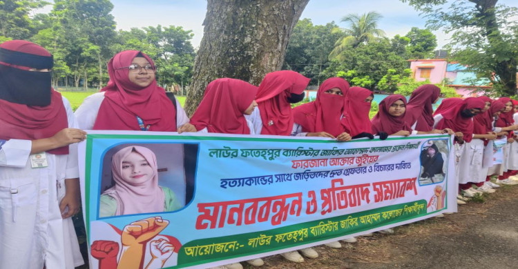 ব্রাহ্মণবাড়িয়ার নবীনগর উপজেলার লাউর ফতেহপুর ব্যারিস্টার জাকির আহাম্মদ কলেজের প্রাক্তন শিক্ষার্থী ফারজানা আক্তার জুঁই হত্যার সাথে জড়িতদের দ্রুত গ্রেফতার ও দৃষ্টান্তমূলক শাস্তির দাবিতে মানববন্ধন ও প্রতিবাদ সমাবেশ অনুষ্ঠিত হয়েছে।