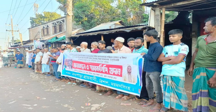 ত্রিশালে ভূমিদস্যু বাবুলকে গ্রেফতার দাবিতে মানববন্ধন