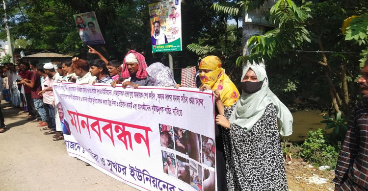 বিয়ে বাড়িতে হামলা, আসামীদের গ্রেপ্তার ও বিচারের দাবিতে মানববন্ধন