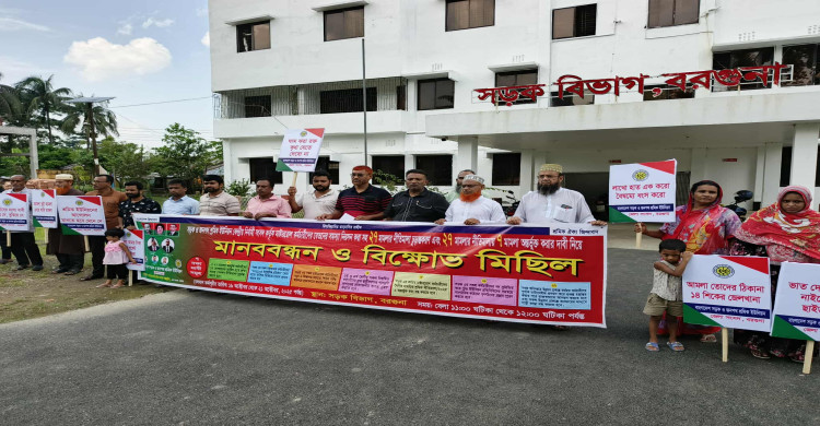 বরগুনায় সওজ’র সাত দফা দাবিতে মানববন্ধন ও কর্মবিরোতী