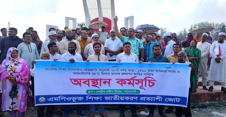 পটুয়াখালীতে এমপিওভুক্ত শিক্ষকদের অবস্থান কর্মসূচি