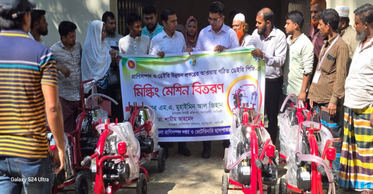 মনোহরদীতে খামারিদের মধ্যে মিল্কিং মেশিন বিতরণ