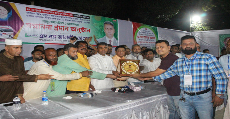 এম্বুল্যান্স মালিক ও চালকদের সম্মাননা প্রদান করলেন বিএনপি নেতা এস এম জাহাঙ্গীর হোসেন