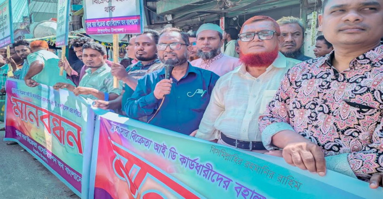 ঠাকুরগাঁওয়ে সার বিক্রেতাদের লাইসেন্স স্থগিতের প্রতিবাদে বিক্ষোভ